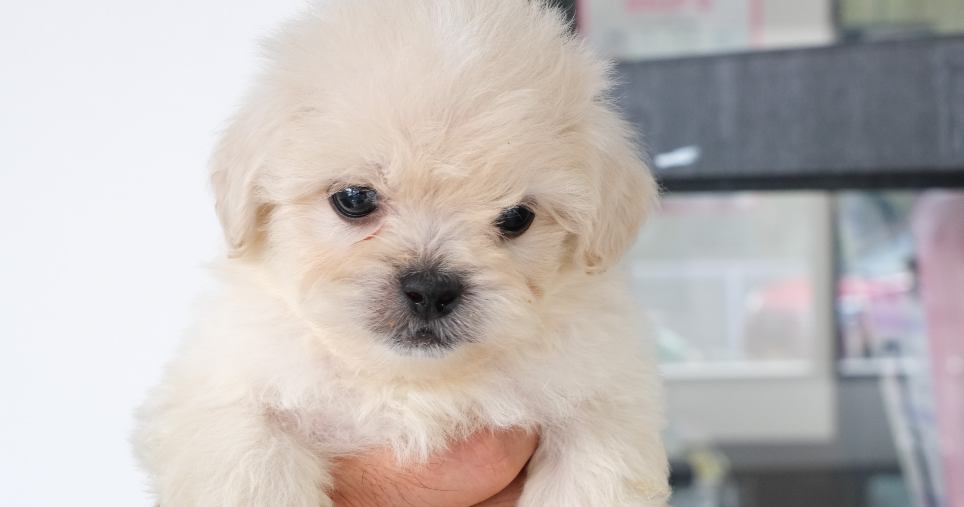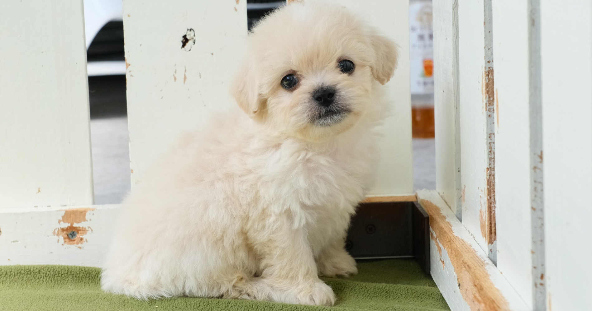ペキニーズ寄りの男の子。ご飯が大好きです。